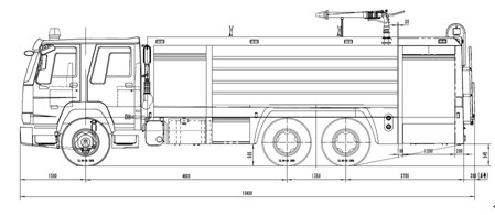17噸泡沫消防車采用中國重汽集團(tuán)濟(jì)南卡車股份有限公司ZZ5357TXFV464MF5型二類汽車底盤,原裝雙排駕駛室,乘員2+4人,該車駕乘舒適輕便。上裝采用外露式水罐,整車載液量為水14000kg;泡沫3000kg。器材箱采用高質(zhì)量鋁合金卷簾門。底盤取力,發(fā)動機(jī)型號為MC11.44-60 ,最大功率327kW,通過萬向聯(lián)軸器驅(qū)動安裝在汽車尾部泵房里的上海茸申CB10/100型低壓消防泵,可在1.0MPa下穩(wěn)定輸出100L/s的流量;車頂安裝成都威斯特消防器材有限責(zé)任公司生產(chǎn)的PL80型消防炮(泡沫消防車),流量80L/s,對應(yīng)壓力0.8MPa,最大承壓1.3MPa,純水射程75m,泡沫射程70m,可360°旋轉(zhuǎn)。同時該車具有比功率大、綜合性能強(qiáng)、操控集中簡便等特點。
