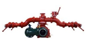 出水管路: ※ 消防泵左右各有 1 個 DN65(或 DN80)的常壓出水口; ※ 1 個 DN80 的炮管路,采用 DN80 撓性接頭,用 DN80 氣動蝶閥控制。